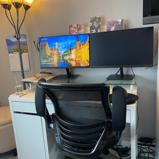 Building a comfortable workspace also contributes to a productive workday. Rather than being bothered by an uncomfortable workspace, an ergonomic setup helps instead focus on the work that needs to get done. The key items in my workspace are an ergonomic chair, a vertical mouse, and a monitor riser. Back in March, I was using a regular wooden, foldable chair that was originally used as part of my vanity station - it did not have the support my body needed throughout the workday. I soon switched to a basic office chair with cushions strapped to the seat and back of the chair for ergonomic comfort. However, it soon became uncomfortable and in the way. I finally decided to buy an ergonomic chair that not only makes me feel more “at work” but also makes for a more comfortable place to sit throughout the day.